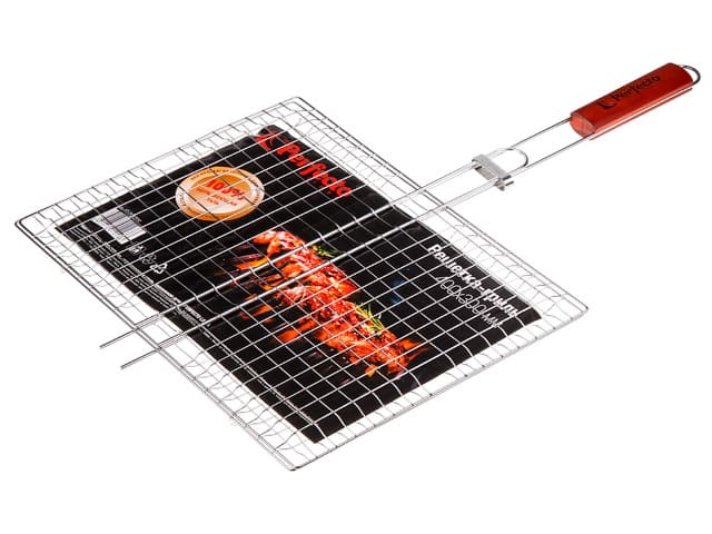 Решетка-гриль, 400x300 мм, нержавеющая сталь, деревянная ручка, PERFECTO LINEA