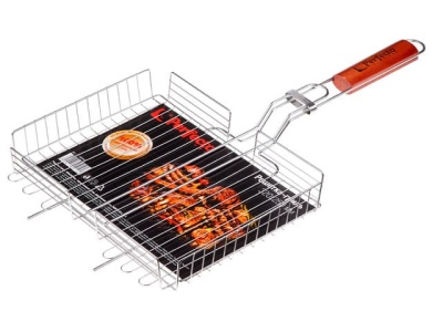 Решетка-гриль, 320x250 мм, нержавеющая сталь, деревянная ручка, PERFECTO LINEA Изготовлена из 100% нержавеющей стали, что делает ее безопасной для здоровья! Используется для запекания мяса, птицы, рыбы и овощей. Прочные стальные прутья от 2-х до 4-х мм толщиной делают решетку более долговечной, а металлические "усы", позволяют надежно разместить над источником тепла. Деревянная вставка на рукоятке,предохранят от ожогов, удобна в руке и имеет эстетический привлекательный вид. Надежное кольцо-фиксатор предотвращает открытие решетки в процессе приготовления.