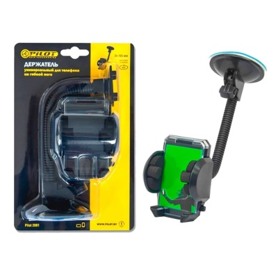 Держатель универсальный для телефона на гибкой ноге Pilot 2081 предназначен для фиксации гаджетов в автомобиле (телефона, навигатора или других, подходящих по размеру). Настройка по ширине 35-105 мм. Длинна штанги 207 мм. Максимальный допустимый вес 0,9 кг. Угол вращения 360°. Эластичная силиконовая присоска с фиксатором ( для крепления на стекло). Специальная клипса (для крепление на решетку обдува).