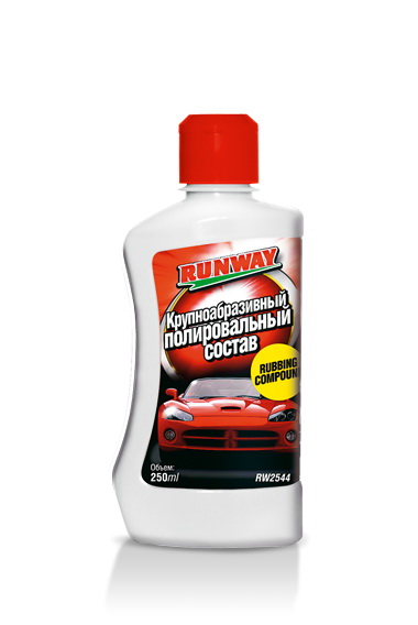 Состав крупноабразивный полировальный Runway RW2544 250 мл - состав, обладающий ярковыраженными абразивными свойствами, предназначенный для удаления глубоких рисок и царапин, для снятия сильно окисленного или помутневшего верхнего слоя краски. Используется для удаления “опыла” и подтеков краски при кузовном ремонте, для шлифовки поверхностей и удаления глянца при частичной покраске панелей “в цвет”. Подходит для всех типов лакокрасочных покрытий. Может использоваться для ручной и машинной полировки.