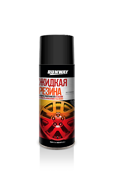 Жидкая резина (черная) Runway RW6700 450 мл - уникальный состав на основе синтетической резины. При распылении образует прочную защитную эластичную поверхность. Легко наносится, а при желании легко снимается-отрывается. После удаления не оставляет следов. Эффективно защищает от сколов, влаги, истирания, дорожных реагентов. Остается гибким, эластичным и не становится ломким в экстремальных погодных условиях от -30 °С до 130 °С. Обладает тепло- и звукоизоляционными свойствами. Имеет противоскользящий эффект. 100% водонепроницаемый. Может наносится на: металл, резину, пластик, дерево, стекло, стекловолокно, камень, бетон. Спрей идеально подходит для авто-вело-мото тюнинга и тюнинга водного транспорта: для дисков, кузова, рамы, решетки радиатора, ободов и т.д, в быту для: ноутбуков, электроприборов, кухонной мебели, граффити. Держится около 6-12 месяцев при надлежащем уходе.