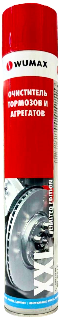 Очиститель тормозных механизмов, универсальный, 1000 мл., WUMAX -Для очистки и обезжиривания при техническом обслуживании ремонте легковых, грузовых автомобилей, а также узлов и агрегатов механизмов и машин. Быстрое и эффективное удаление маслянистых/жировых остатков, сажи, тормозной пыли и масляных остатков с автомобилей, дисковых и барабанных тормозов, картеров двигателя, коробки передач и т.д. Очищает диски и барабаны тормозов, детали сцепления, поверхности перед склеиванием или нанесением герметика, удаляет масла, жир и грязь.