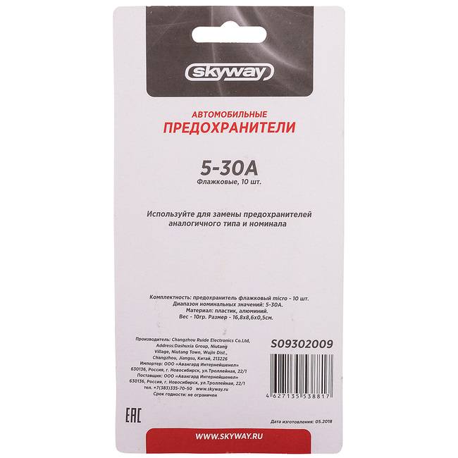 Набор предохранителей флажковых MICRO 10шт SKYWAY S06701010 предназначен для защиты бортовой электрической цепи автомобиля от перегрева и коротких замыканий. Изготовлены из термостойкой пластмассы с вставками из цинка. Важнейшая деталь для Вашего автомобиля.