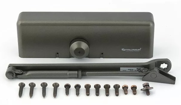 Доводчик дверной 1085 BC коричневый PALLADIUM. Дверной доводчик с ветровым тормозом. Идеален для входных дверей в общественных местах с риском вандализма или неаккуратного обращения (школы, торговые центры и т. д.). Также подойдет для входных дверей объектов в ветреной местности. Требования к полотну: масса – 60-85 кг, размер – до 1000*2400 мм.