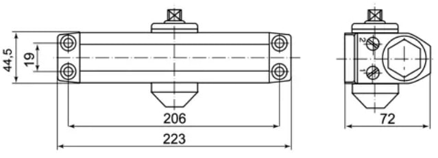 - Ветровой тормоз (Back Check). Амортизирует резкое распахивание или захлопывание двери в секторе от 70° до 180° (задается регулировкой).