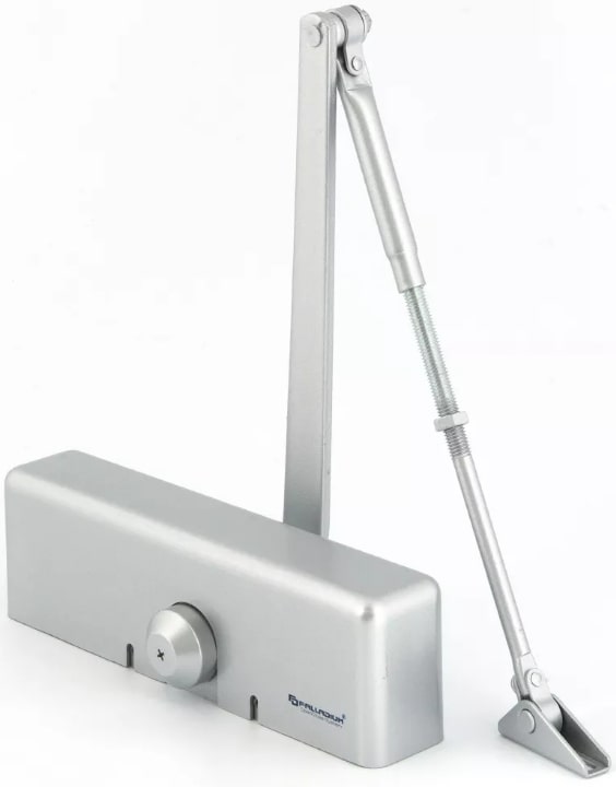 Доводчик дверной 1085 BC серебро PALLADIUM. Дверной доводчик с ветровым тормозом. Идеален для входных дверей в общественных местах с риском вандализма или неаккуратного обращения (школы, торговые центры и т. д.). Также подойдет для входных дверей объектов в ветреной местности. Требования к полотну: масса – 60-85 кг, размер – до 1000*2400 мм.