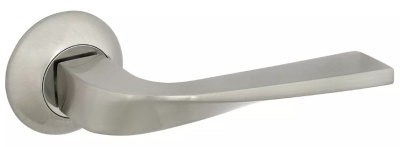 Дверная ручка Z 106 SN Фабрика замков – нажимная дверная ручка с круглой розеткой и изящно перекрученным рычагом. Удачно смотрится на межкомнатных и входных дверях в современном стиле.