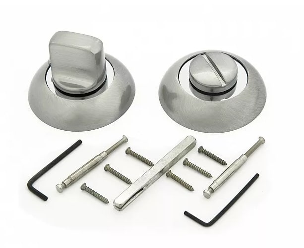 Обратите внимание: на пассивной части накладки оставлен паз для отпирания замка монетой. Он пригодится в экстренных ситуациях: если заклинил замок, запершемуся стало плохо или потребовалась помощь.