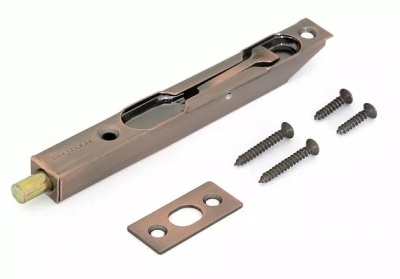 В комплекте: дверная задвижка 140 мм, ответная планка, шурупы в цвет планки.