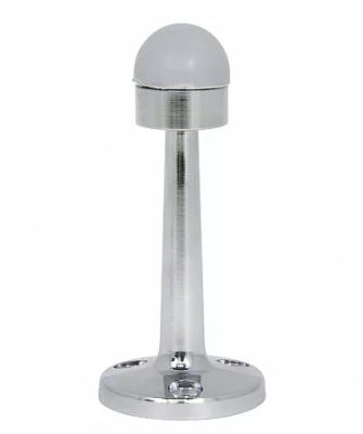 Усиленный настенный ограничитель для тяжелых дверей. Массивная гальванизированная основа не деформируется и защищена от коррозии. Резиновая головка не оставляет отметин на полотне и с годами почти не истирается.