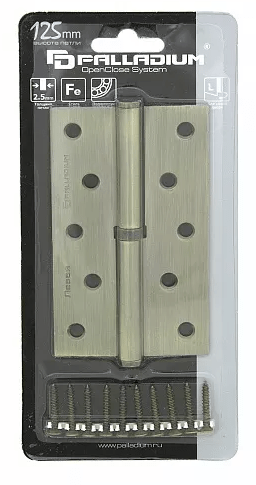 Петля 125 мм левая разъемная антик бронза N 613-S-5" AB PALLADIUM. Стальная врезная петля 125 мм для левых деревянных дверей. По типу конструкции разъемная и позволяет вешать/снимать полотно, не раскручивая шурупы.