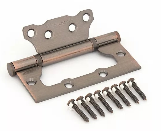 Петля 100 мм накладная античная медь 2BB-100 AC PALLADIUM. Накладная петля-бабочка Palladium 2BB-100 для деревянных межкомнатных дверей. Главные достоинства: низкая цена и простейший монтаж (без врезки фрезой или стамеской). Это позволяет навесить дверь самостоятельно, не обращаясь к мастеру.