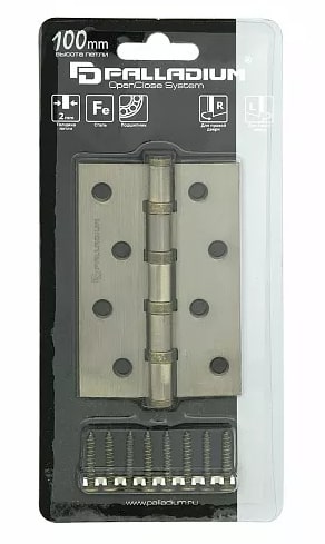 В комплекте: универсальная дверная петля Palladium N 4BB-100 2 mm (1 шт.), шурупы в цвет (8 шт.)