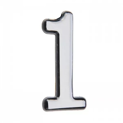 Цифра дверная пластик "1" хром, Аллюр 6968 на двусторонней клеевой основе