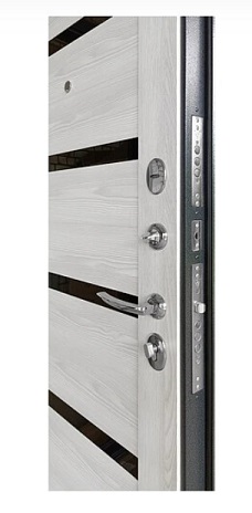 - Комплект: Дверное полотно, коробка, замки — в сборе, Ручки, 4 ключа от верхнего замка / 5 ключей от нижнего замка, Глазок