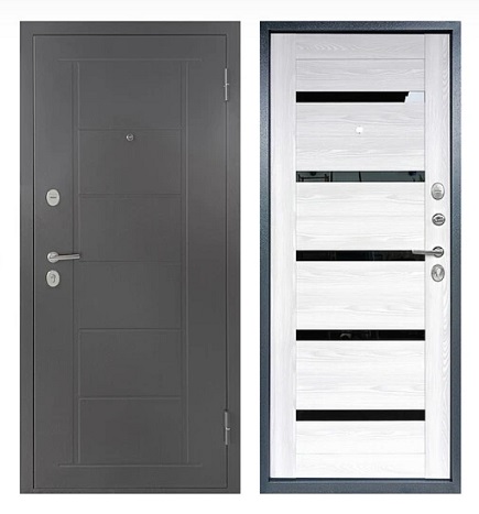 Дверь входная металлическая ТИТАН 2050x860 правая, графит/ривьера айс Промет — элемент стеновой конструкции, предназначенный для заполнения дверных проемов и состоящий из дверного блока, крепления дверного блока к проему, монтажных швов, системы уплотнений и облицовки и обеспечивающий при закрытом положении дверного полотна защиту от климатических, шумовых и других воздействий.