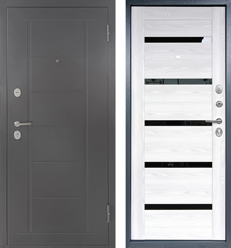 Дверь входная металлическая ТИТАН 2050x960 правая, графит/ривьера айс Промет — элемент стеновой конструкции, предназначенный для заполнения дверных проемов и состоящий из дверного блока, крепления дверного блока к проему, монтажных швов, системы уплотнений и облицовки и обеспечивающий при закрытом положении дверного полотна защиту от климатических, шумовых и других воздействий.