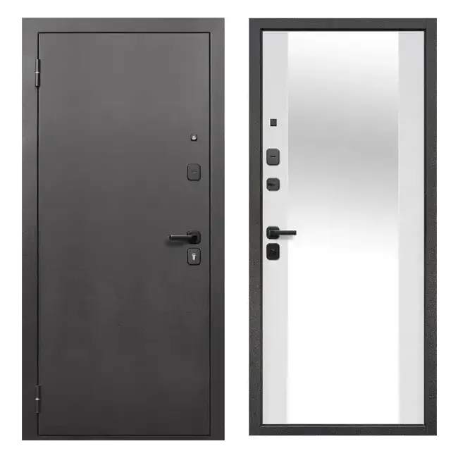 Дверь входная металлическая Зеркало 860 L Guard антик серебро/белый матовый
