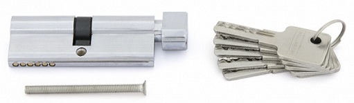 В комплекте: цилиндровый механизм с вертушкой, перфорированные ключи (5 шт.), крепежный винт.