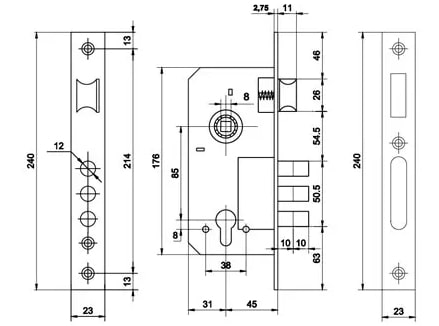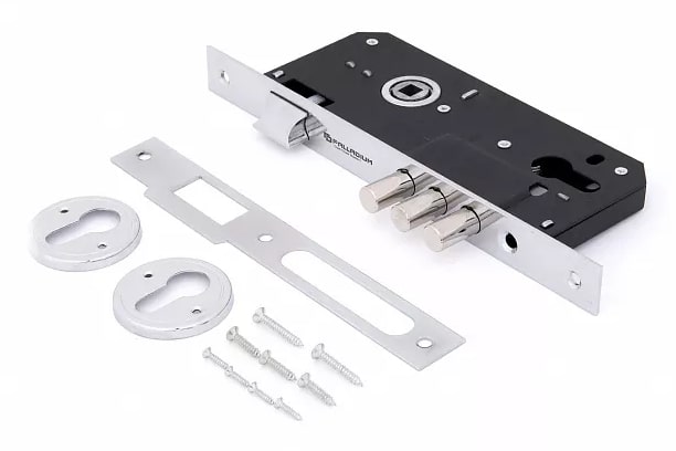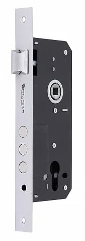 Корпус врезного замка для межкомнатных и входных дверей. Имеются дополнительные отверстия для установки раздельной фурнитуры и броненакладки. Шариковый подшипник в узле ручки обеспечивает плавность хода ригелей, легкое вращение ручки и увеличивает срок эксплуатации замка.