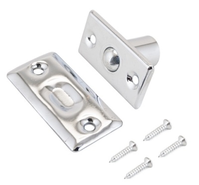 Фиксатор дверной с шариком. Предназначен для запирания межкомнатных дверей (алюминиевых, деревянных, из МДФ и ПВХ). Защелка не запирает, а защелкивает полотно, тем самым удерживая его в дверном проеме.