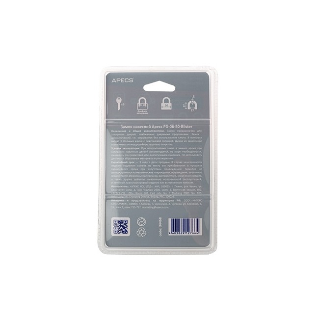 Замок навесной Apecs PD-06-50-Blister