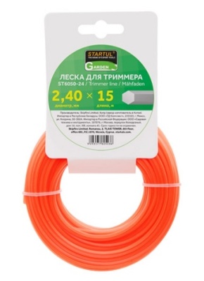 Леска триммерная ф2.4ммx15м с шестигранным сечением STARTUL GARDEN