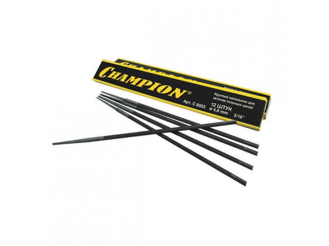 Напильник для заточки цепей d 4.8 мм, Champion C8003 имеет круглое сечение. Предназначен для заточки звеньев цепей у бензопил.