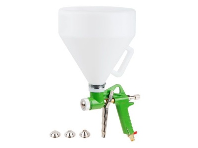 - Конструкция распылителя предусматривает постоянное прохождение воздуха через сопло, даже при отпущенном курке, для того, что бы материал не засыхал.