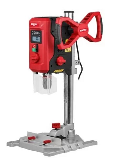 Константная электроника позволяет работать под нагрузкой с заданной стабильной скоростью. Быстрозажимной патрон обеспечивает удобство и комфорт при работе. Электронный дисплей предоставляет информацию о текущей скорости и глубине сверления во время эксплуатации. Надежные быстрозажимные тиски позволяют прочно закрепить заготовку, обеспечив хорошее качество отверстий. Лазерный указатель позволяет зафиксировать точку вхождения сверла в материал для достижения точного результата. Данная модель оснащена LED-подсветкой рабочей зоны.