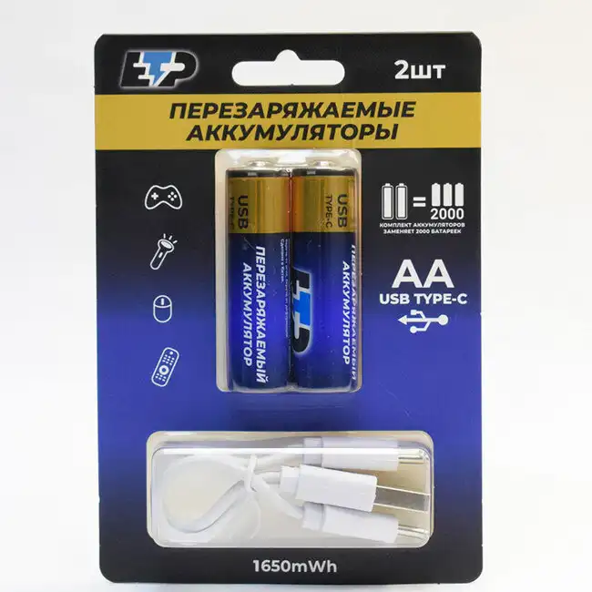 Элемент питания (аккумулятор) литий-ионный перезаряжаемый ETP 104006. Кабель для зарядки в комплекте.