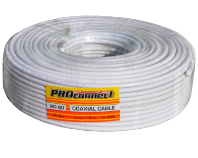 Телевизионный коаксиальный кабель RG 6U PROCONNECT. Является самым распространенным решением для подключения внутренних и межблочных соединений общепромышленных и бытовых радиотехнических устройств, для подключений систем телевидения, а также для подключения видеокамер наружного и внутреннего наблюдения.