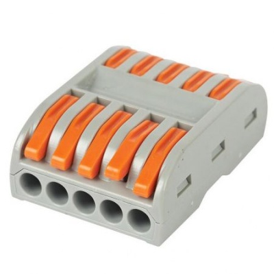 Соединительная проходная клемма СК 415-5 HLT предназначены для соединения алюминиевых и медных проводников. Корпус клемм изготовлен из пластика не распространяющего горение, контактная часть: из луженой латуни, что дает возможность подсоединять как алюминиевые, так и медные проводники.