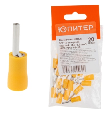 Наконечник НШКИ штыревой круглый (4,0 - 6,0 мм2) (20 шт) Юпитеp предназначен для оконцевания методом опрессовки гибких многопроволочных проводников и является современной альтернативой обязательному обслуживанию многожильных проводников при присоединении к клеммам.