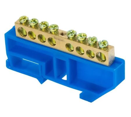 Шина "N" нулевая, 8х12мм 8 отверстий латунь синий изолятор на DIN-рейку, EKF PROxima применяется при комплектации щитового оборудования для присоединения нулевых проводников (шина N) и заземления (шина PE). Нулевая шина устанавливается на изоляторе.
