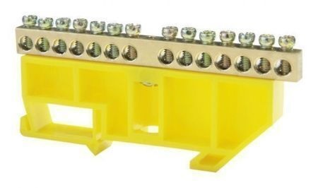 Шина "N" нулевая на DIN-изоляторе 14 отверстий желтая, ETP