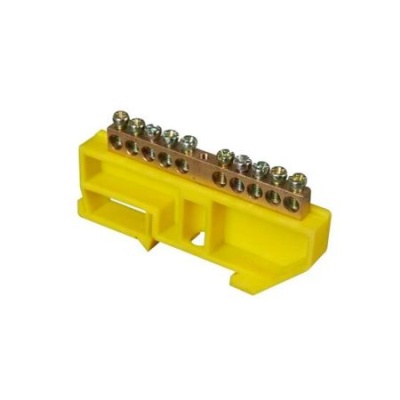 Шина N "ноль" на DIN-изоляторе ШНИ-6х9-6-Д желтая HLT