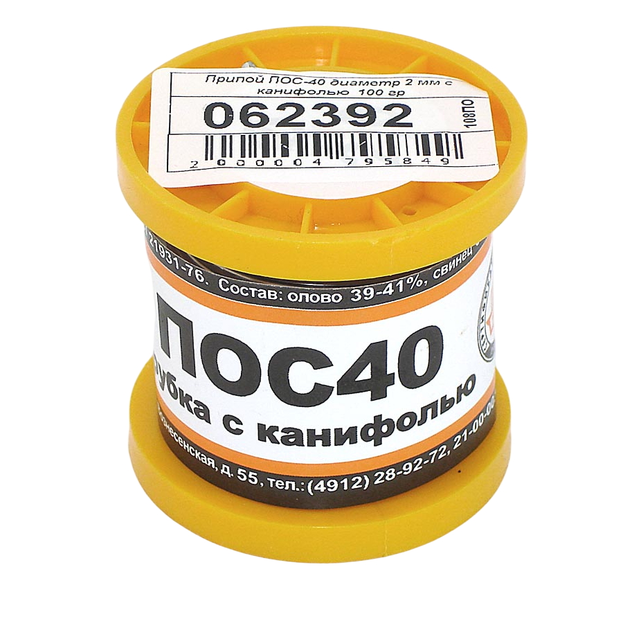 Припой ПОС 40 d2 мм с канифолью 100 г 019.402.100.01