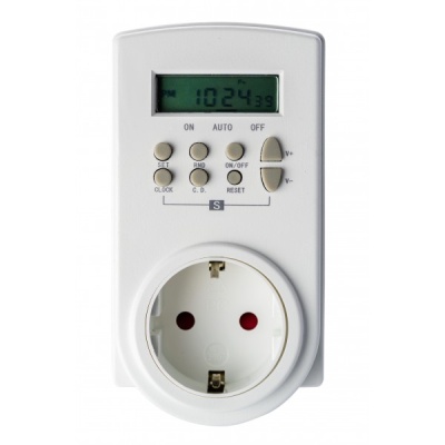 Таймер цифровой недельный Electraline предназначен для управления бытовыми электроприборами по расписанию, прост, надежен и точен, незаменим в каждом доме. Воткните таймер в розетку — и подключенный к нему электроприбор будет включаться и выключаться по составленному Вами расписанию. Цифровой недельный таймер имеет 98 программ включения (выключения) в неделю. Вы можете создать расписание работы электроприбора с точностью до минуты на каждый день недели. Энергонезависимая память сохранит заданную Вами программу при временном отключении напряжения в электросети. Максимальное число циклов включений в неделю: 98, имеет функцию обратного отсчета.