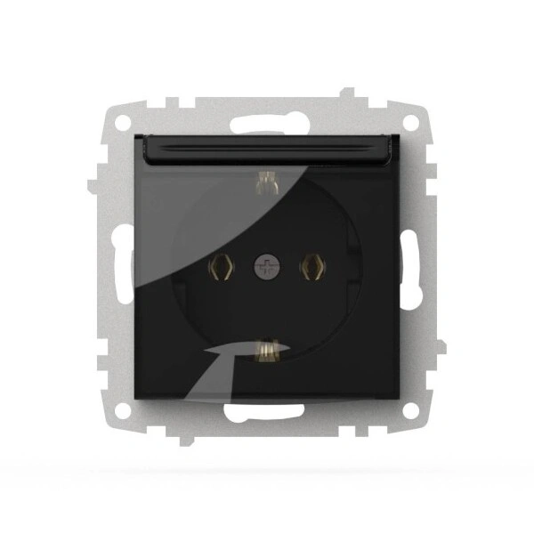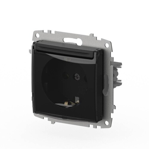 Розетка 1-ая Zena-Vega вантаблэк с заземлением с крышкой EL-BI 609-014800-218