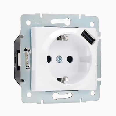 РОЗЕТКА 1-ая белая, c заземлением + USB разъем, Karina Lizard