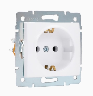 РОЗЕТКА 1-ая белая, c заземлением термопласт, Karina Lizard
