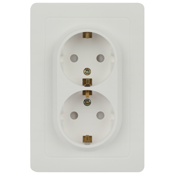 Розетка 2-ая белая, c заземлением и шторками, термопласт, Intro Style 7-208-01