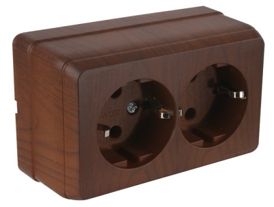 Розетка двойная наружная c заземлением Bron орех, MUTLUSAN 2160 202 0257