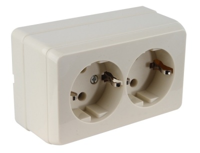 Розетка двойная наружная c заземлением Bron кремовая, MUTLUSAN 2160 202 0202