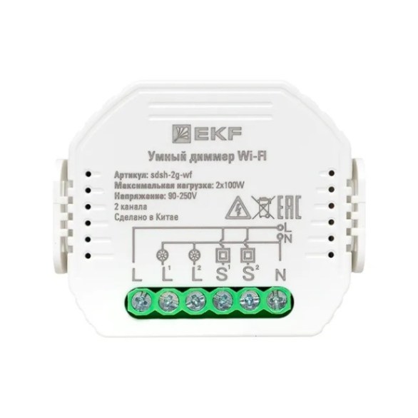Умный диммер Wi-Fi Connect двухканальный в подрозетник EKF SDSH-2G-WF предназначен для управления освещением с помощью смартфона и регулировки яркости.