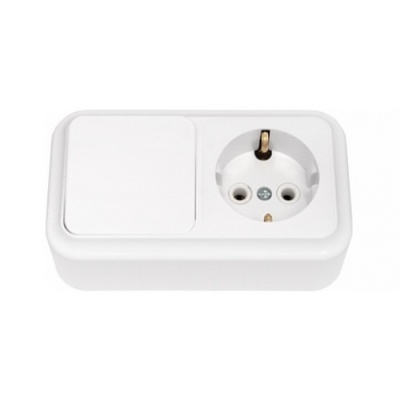 ВЫКЛЮЧАТЕЛЬ 1-клавишный+розетка 1-я с заземлением В-РЦ-527, Пралеска, Bylectrica