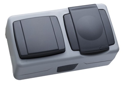ВЫКЛЮЧАТЕЛЬ 1-клавишный серый + розетка 1-я с крышкой, 36064202 Makel
