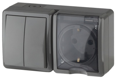 ВЫКЛЮЧАТЕЛЬ 2-клавишный серый + розетка 1-я с заземлением и крышкой, 554-011500-922 EL-BI Eva, ВЫКЛЮЧАТЕЛЬ 2-клавишный серый + розетка 1-я с заземлением и крышкой, 11-7408-03 ЭРА Эксперт |