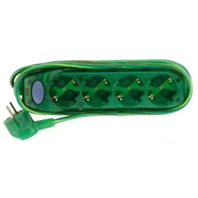 Удлинитель 4 розетки 1.5м зеленый с заземлением Electraline 62328 (выключатель, защита от детей) предназначен для подключения бытовых электрических приборов дома и в офисе. Имеет заземление и выключатель, защитные шторки от детей. Длина шнура 1.5 метра. Максимальная мощность нагрузки 3500 Вт. Цвет: прозрачный – зеленый.